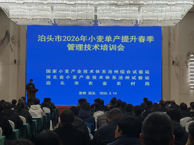 为深入贯彻落实国家粮食安全重要指示精神,全面提升种植户科学种麦水平,切实解决小麦春季管理中的技术难点,3月14日,我院国家小麦产业技术体系沧州试验站联合泊头农业局,成功举办小麦春季管理技术培训会,作物所部分成员参会学习,还有种粮大户、合作社骨干及家庭农场主等200余人参加培训,为夏粮丰产丰收注入技术动能。