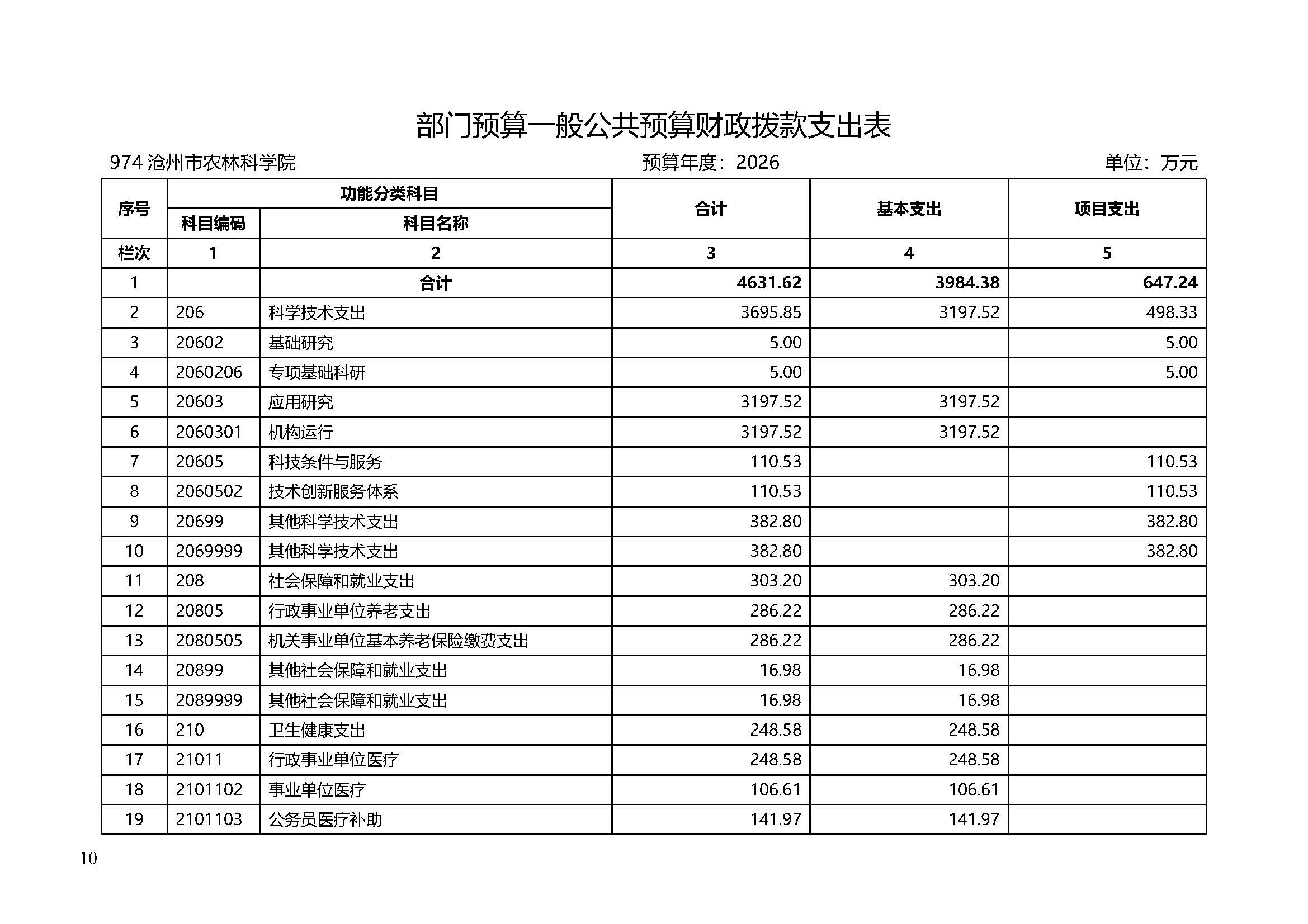 沧州市农林科学院2026年部门预算信息公开