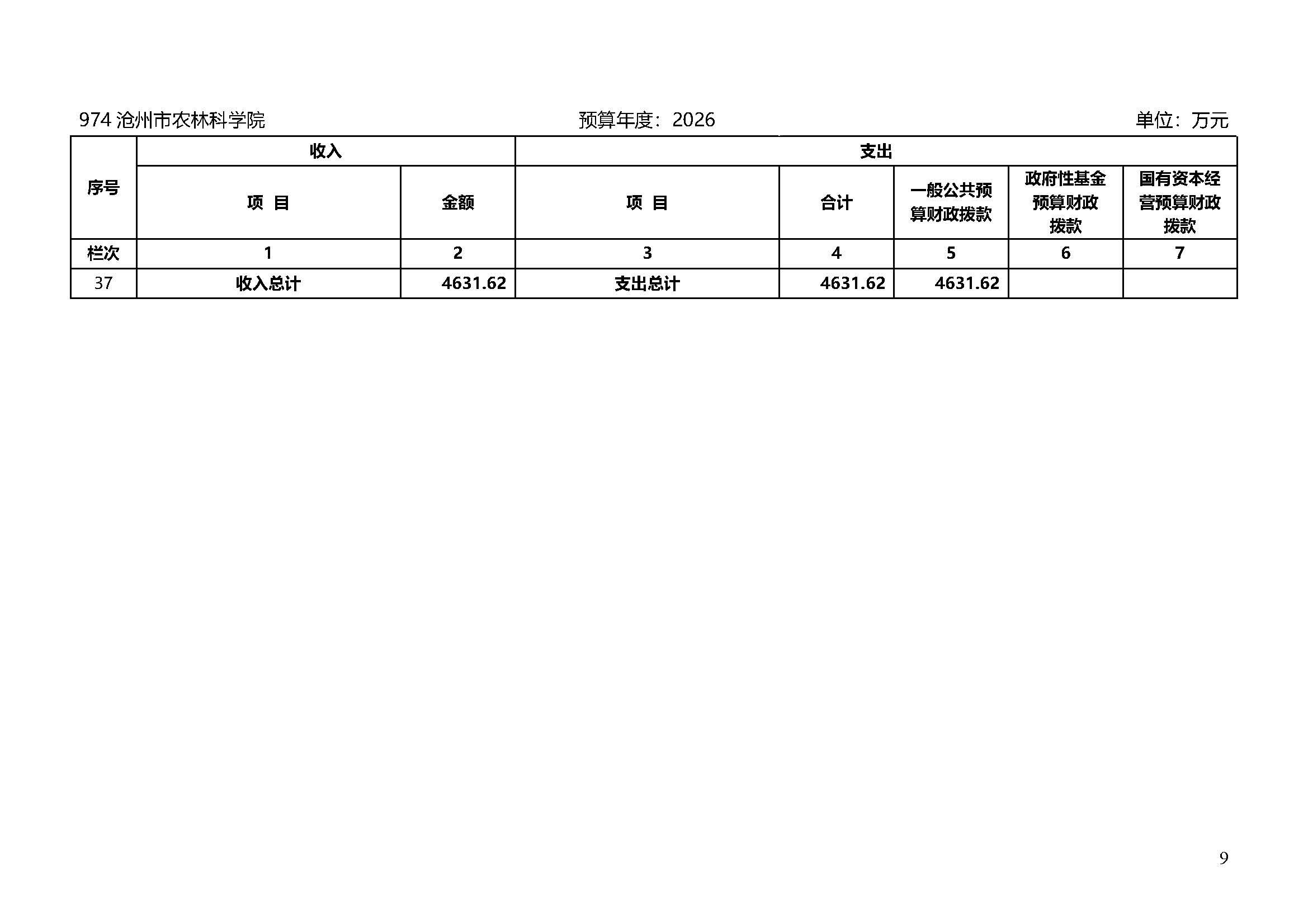沧州市农林科学院2026年单位预算信息公开