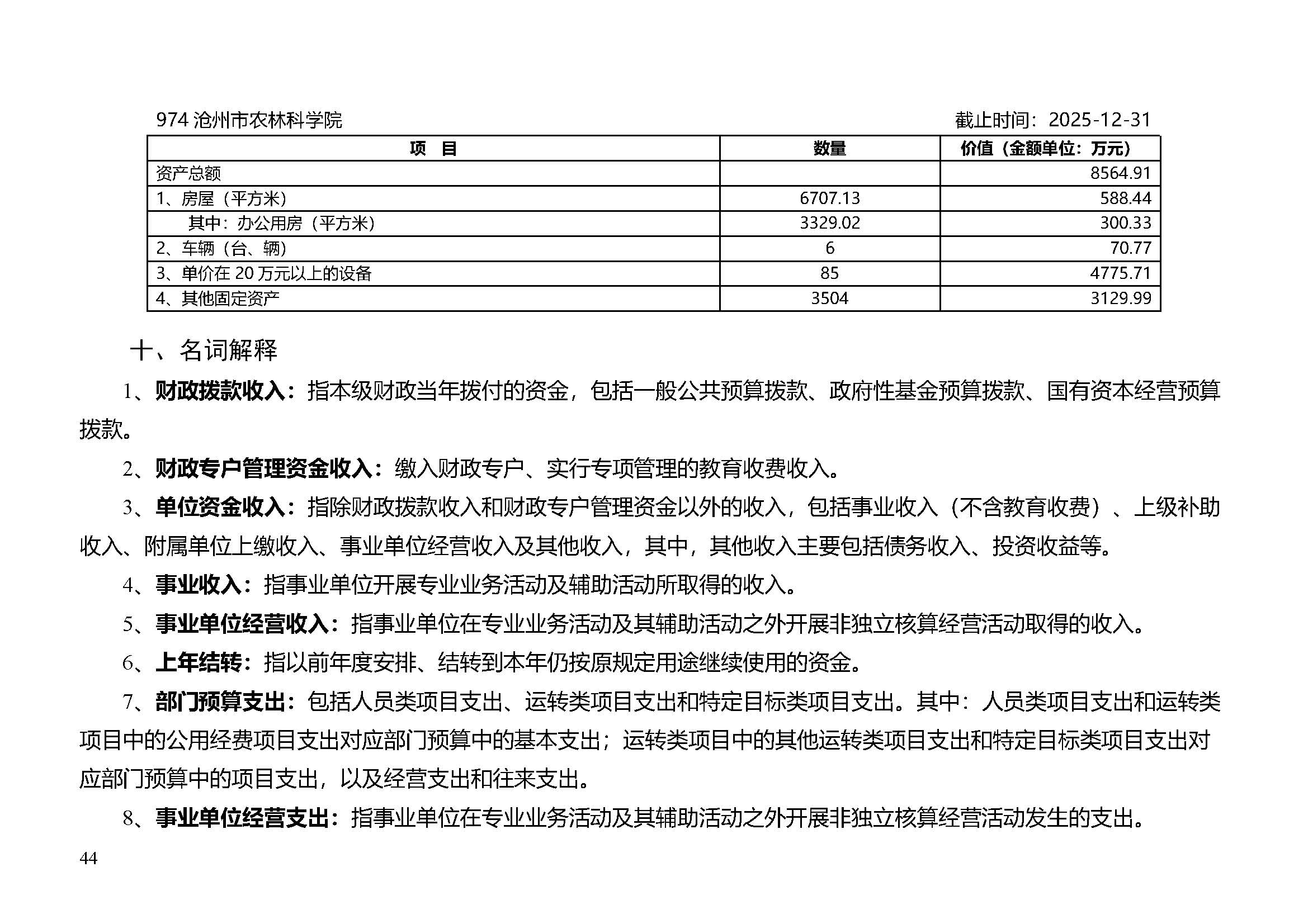 沧州市农林科学院2024年度部门决算公开文本